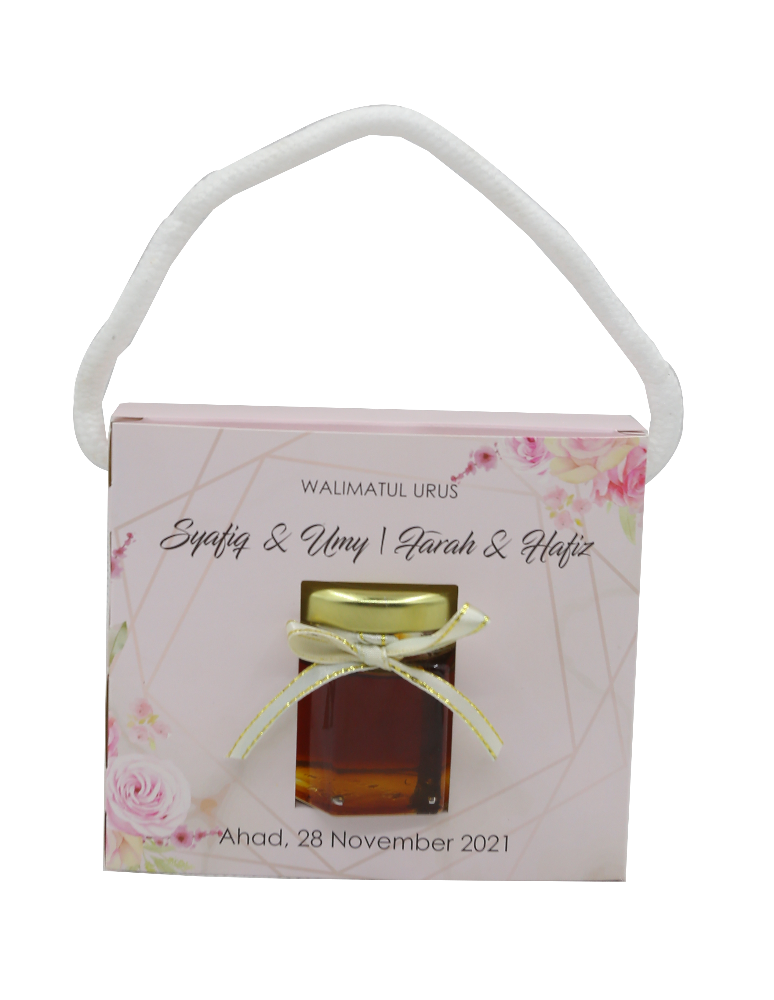 – Honey in hexagon glass jar ( 40 ml) , decorated with ribbon